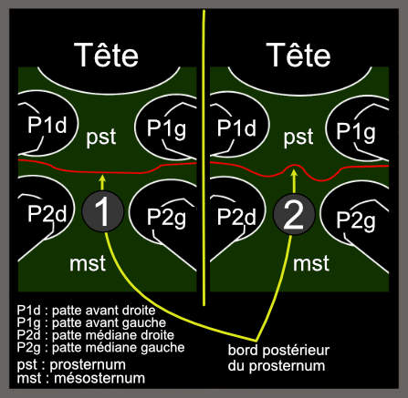 Schéma représentant un des détails à observer pour déterminer les espèces en les observant par dessous.