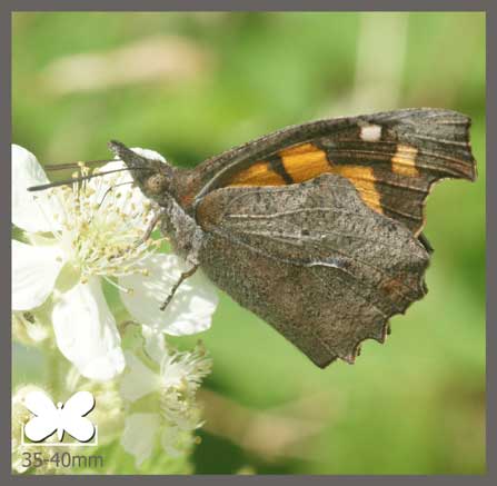 L'Échancré (Libythea celtis) est un papillon de couleur brun à brun orangé, plus sombre de profil, portant dorsalement de grandes taches rectangulaires orange ainsi que deux taches plus petites blanches à jaunâtre (1) situées dans l'angle de l'aile antérieure. On le reconnait facilement au découpage grossièrement rectangulaire de l'aile antérieure (2) et à ses longs palpes prolongeant la tête comme un museau conique (3).