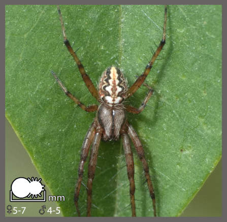 Épeire fougère (Neoscona adianta) mâle avec ses deux anneaux noirs aux tibias.