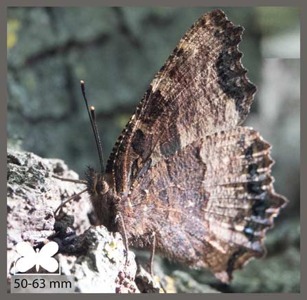Détails déterminants chez la Grande Tortue (Nymphalis polychloros) ailes ouvertes.