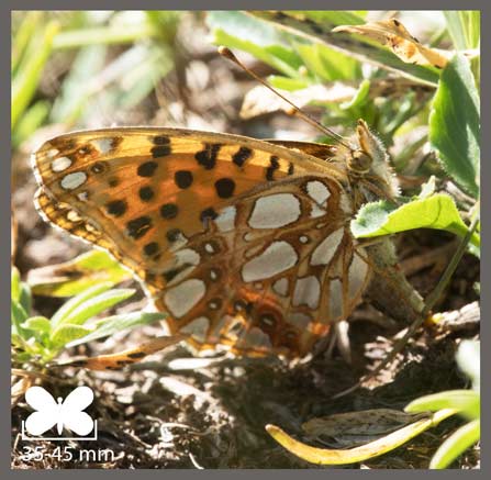 Caractères déterminants chez le Petit Nacré (Issoria lathonia) en vue de profil.