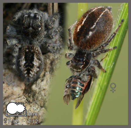 Saltique de Sloane (Philaeus chrysops) mâle et femelle.