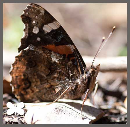 Le Vulcain (Vanessa atalanta) vu de profil.