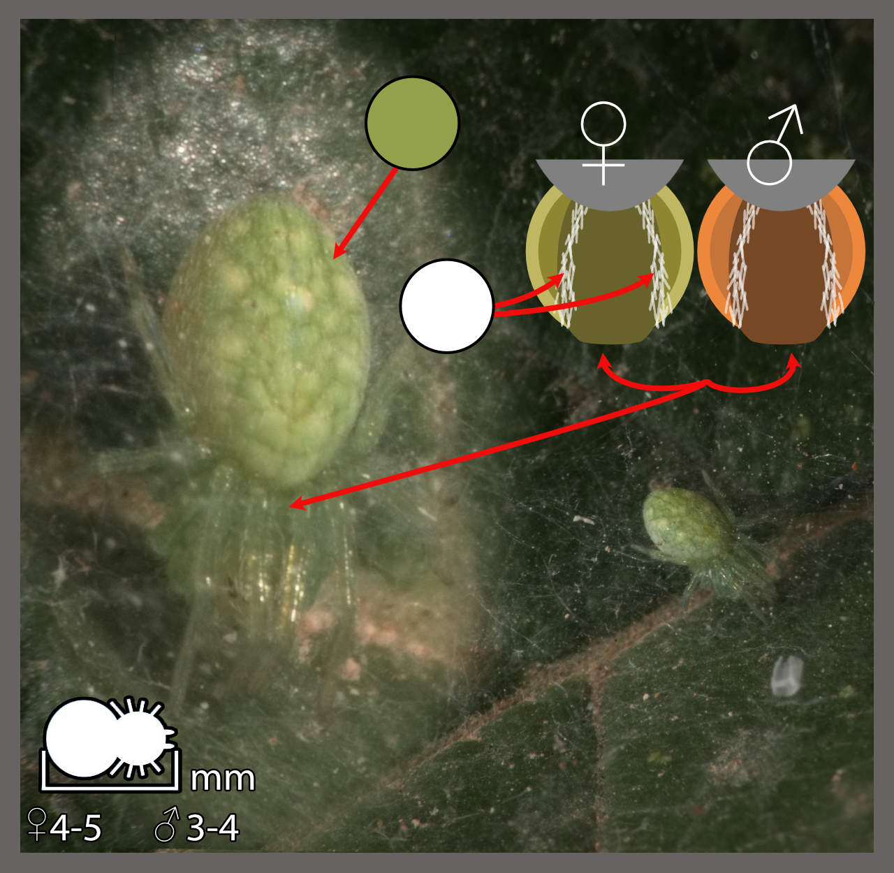 On rencontre ces araignées sur le feuillage des arbres et arbustes.