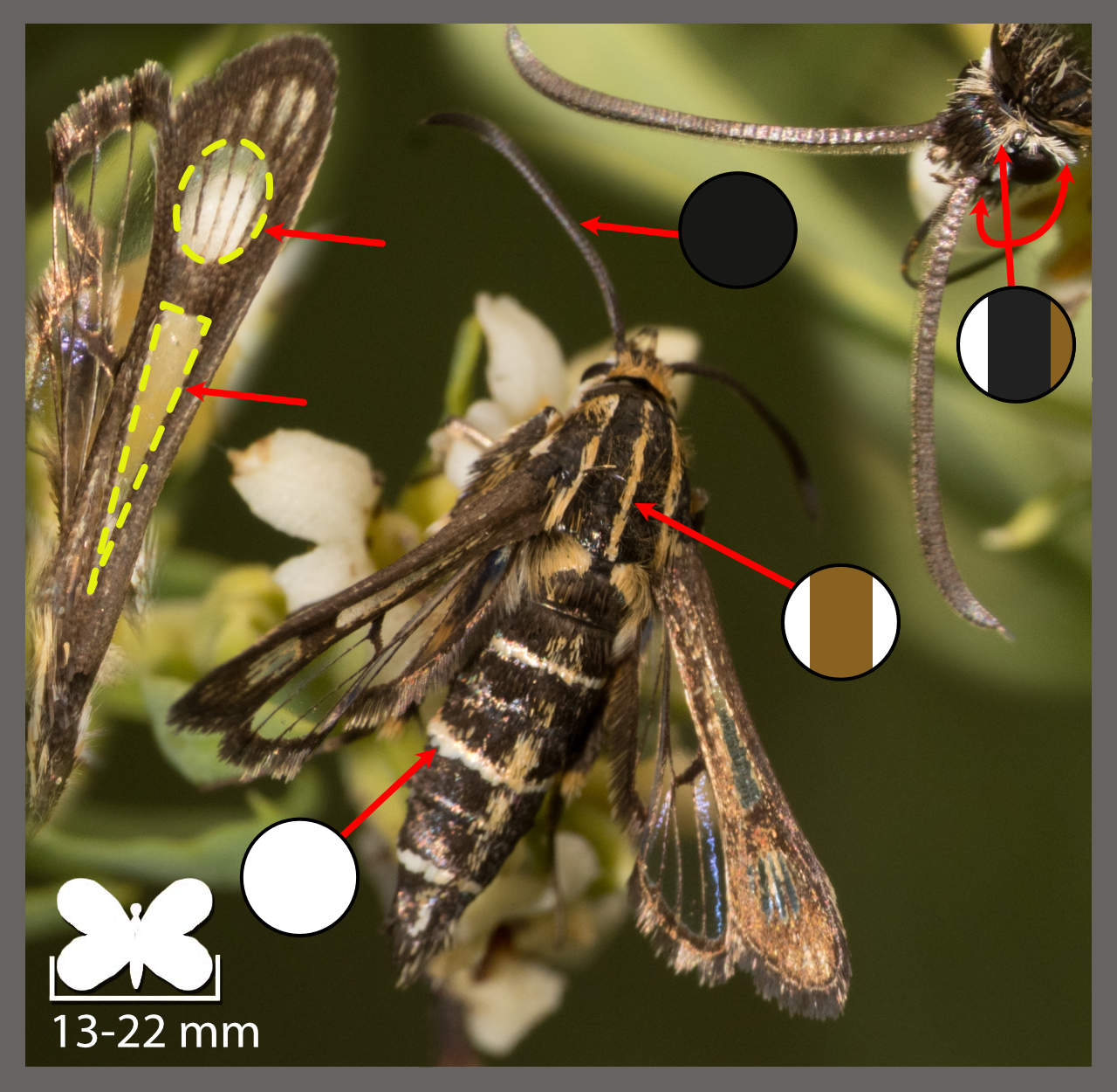 On retrouve dans cet ensemble les espèces de papillons ne correspondant pas aux catégories précédentes Les Ptérophores Pterophorus et autres genres (15-30 mm) La Sésie apiforme Sesia apiformis (31-48 mm) La Sésie empiforme Chamaesphecia empiformis (13-22 mm) La Sésie de l'Oseille Pyropteron chrysidiformis (12-15 mm) La Sésie du pommier Synanthedon myopaeformis (22-25 mm)