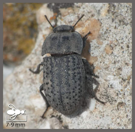 Asida sericea vu de face avec son clypéus peu échancré et ses mandibules.