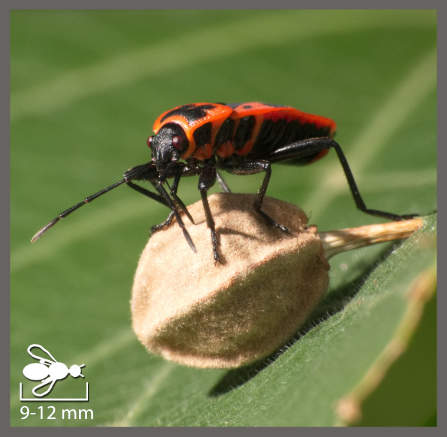 Gendarme (Pyrrhocoris apterus) piquant un fruit de tilleul.
