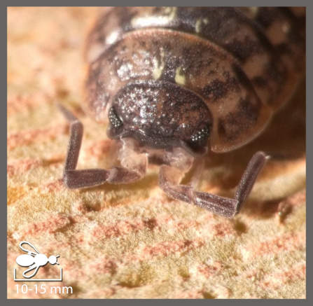 Porcellion à tête noire (Porcellio spinicornis) sous une écorce en hiver.