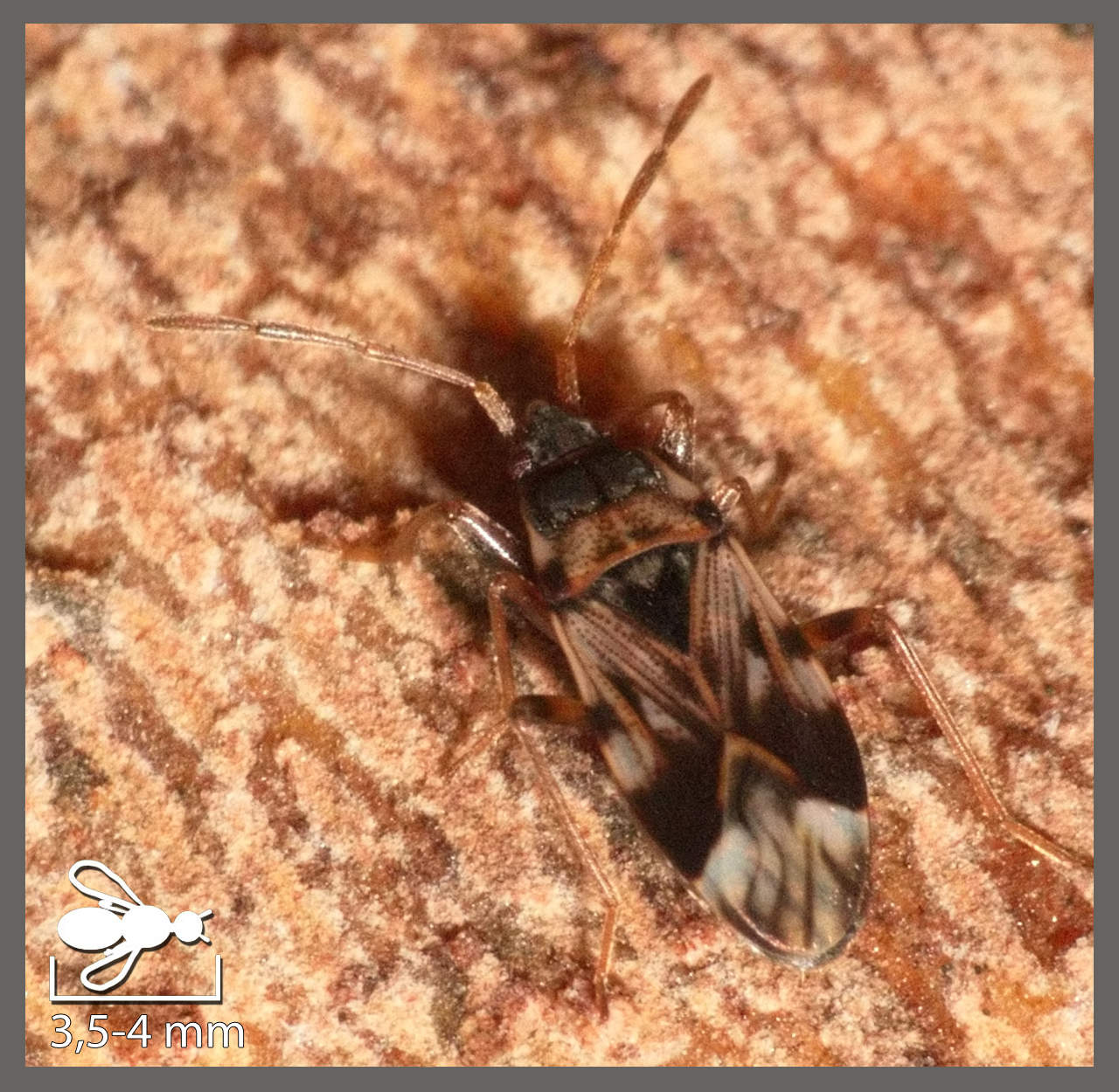 Vous trouverez dans cet ensemble les autres espèces de punaises sans cuneus et ne correspondant pas aux caractères des groupes précédents. Arocatus longiceps Arocatus longiceps (6-7 mm) Lygée ponctué-moucheté Horvathiolus superbus (4-5 mm) Punaise écuyère Lygaeus equestris (9-11 mm) Punaise de la Morelle Spilostethus furcula (9-11 mm) Viole rouge Spilostethus pandurus (13-15 mm) Punaise à damier Spilostethus saxatilis (10-12 mm) Nysius graminicola Nysius graminicola (4-5 mm) Punaise cuirasse Coptosoma scutellatum (3,5-4,5 mm) Gendarme Pyrrhocoris apterus (9-12 mm) Pyrrhocore méditerranéen Scantius aegyptius (8-10 mm) Punaise de la jusquiame Corizus hyoscyami (9-12 mm) Maccevethus Maccevethus sp. (9-11 mm) Stictopleurus, Rhopalus et Liorhyssus Stictopleurus Rhopalus et Liorhyssus (6-9 mm) Eremocoris fenestratus Eremocoris fenestratus (6-8 mm) Scolopostethus patruelis Scolopostethus patruelis (3,5-4 mm) Lygée de la Vipérine Aellopus atratus (8-9 mm) Beosus quadripunctatus Beosus quadripunctatus (6-6,5 mm) Raglius alboacuminatus Raglius alboacuminatus (5,5-6 mm) Raglius confusus Raglius confusus (7-8 mm) Rhyparochromus vulgaris Rhyparochromus vulgaris (7-8 mm) Xanthochilus Xanthochilus sp. (4,5-8,5 mm) Tigre du platane Corythucha ciliata (2-3 mm) Tigre de l'Amandier Monosteira unicostata (2-2,5 mm)