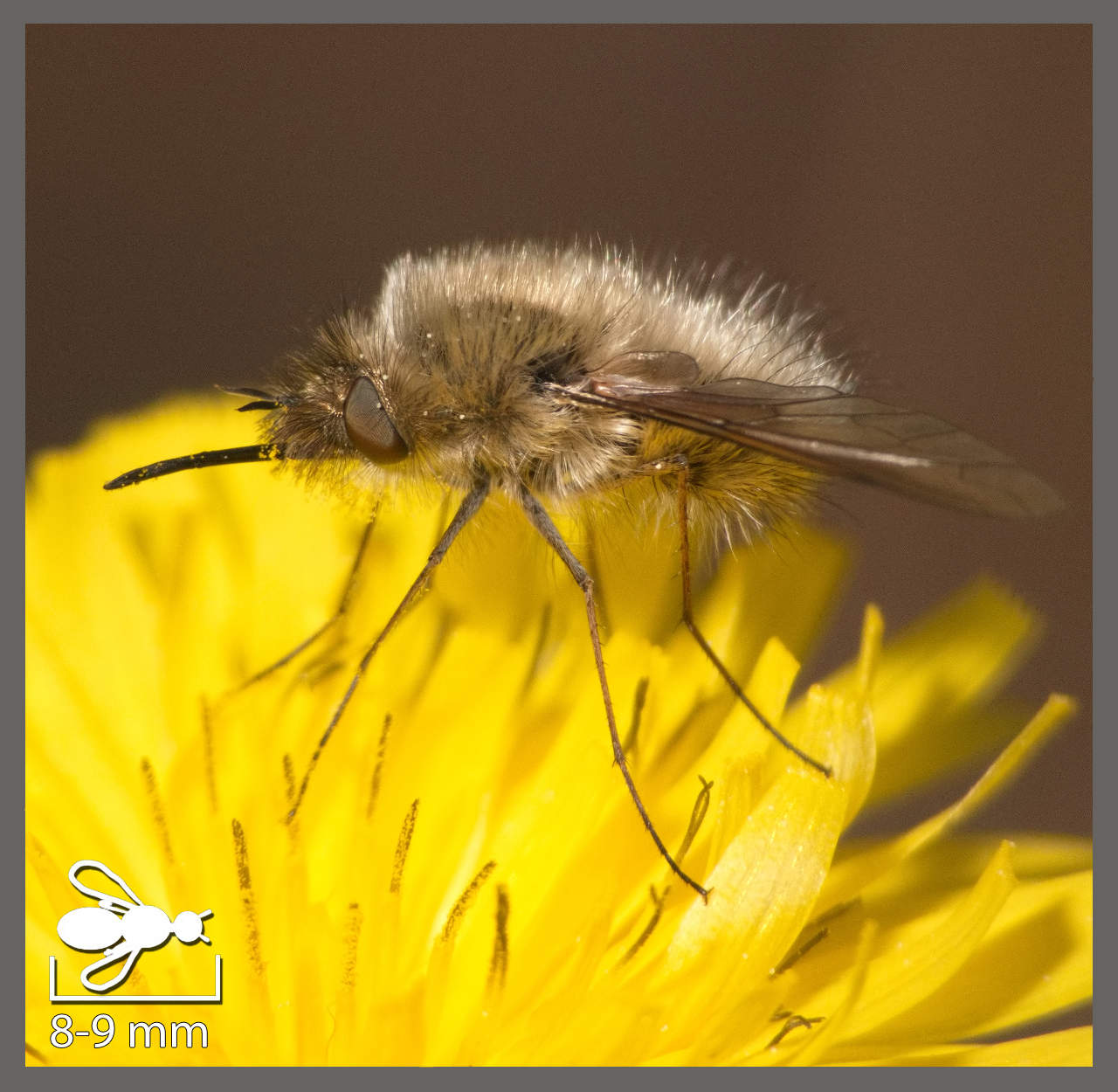 Anthrax trifasciatus Anthrax trifasciatus (6-11 mm) Bombyle noir Bombylella atra (6-11 mm) Bombyle bicolore Bombylius discolor (10-12 mm) Grand Bombyle Bombylius major (8-12 mm) Bombylius medius Bombylius medius (9-12 mm) Bombylius jaunes aux ailes non tachées Bombylius sp. (7-12 mm) Bombylius venosus Bombylius venosus (8-9 mm) Exhyalanthrax afer Exhyalanthrax afer (8-10 mm) Bombyle chamarré Exoprosopa jacchus (9-12 mm) Gérons Geron sp. (4-6 mm) Anthracine morio Hemipenthes morio (7-14 mm) Anthracine veloutée Hemipenthes velutina (7-10 mm) Lomatie Lomatia sp. (10-13 mm) Phtyrie jaune Phthiria fulva (3-4 mm) Systoechus aux ailes non tachées Systoechus sp. (7-12 mm) Villa cingulata Villa cingulata (9-12 mm) Bombyle hottentot Villa hottentotta (12-16 mm) Villa ixion Villa ixion (7-8 mm) Villa paniscus Villa paniscus (13-15 mm)