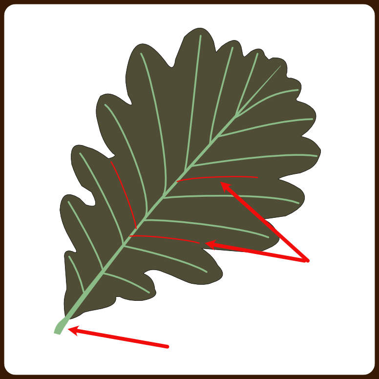 Pour terminer, observer la longuer du pétiole et les nervures entre deux lobes.