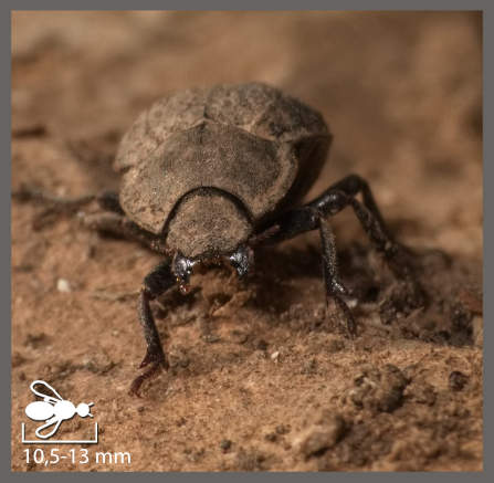 Asida sericea vu de face avec son clypéus peu échancré et ses mandibules.
