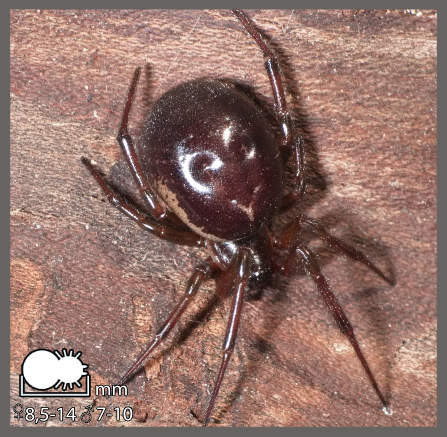 Fausse Veuve noire (Steatoda nobilis) trouvée sous une écorce de platane en hiver.