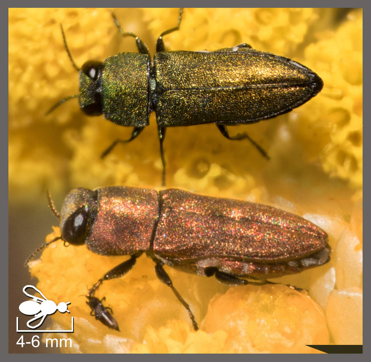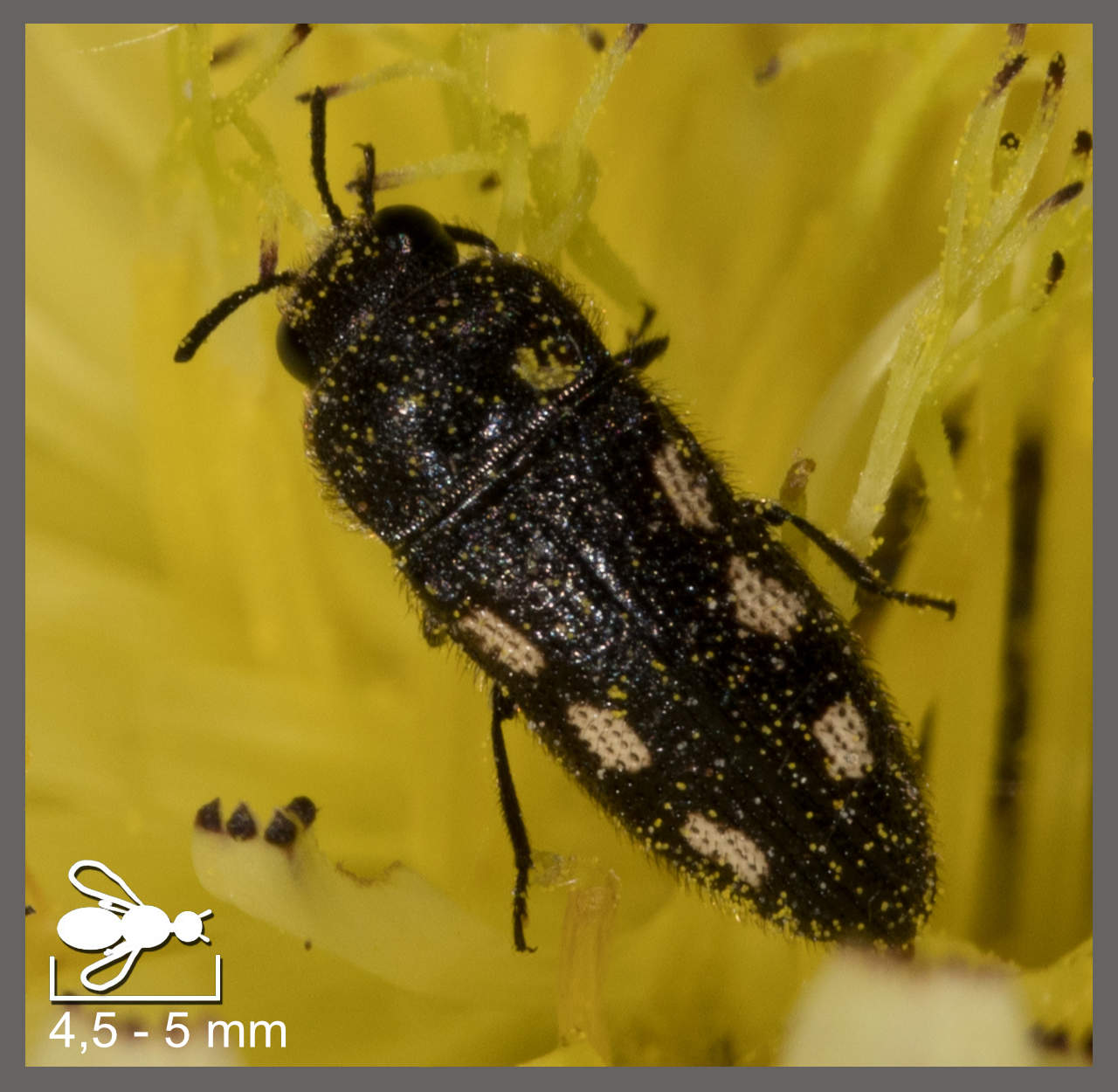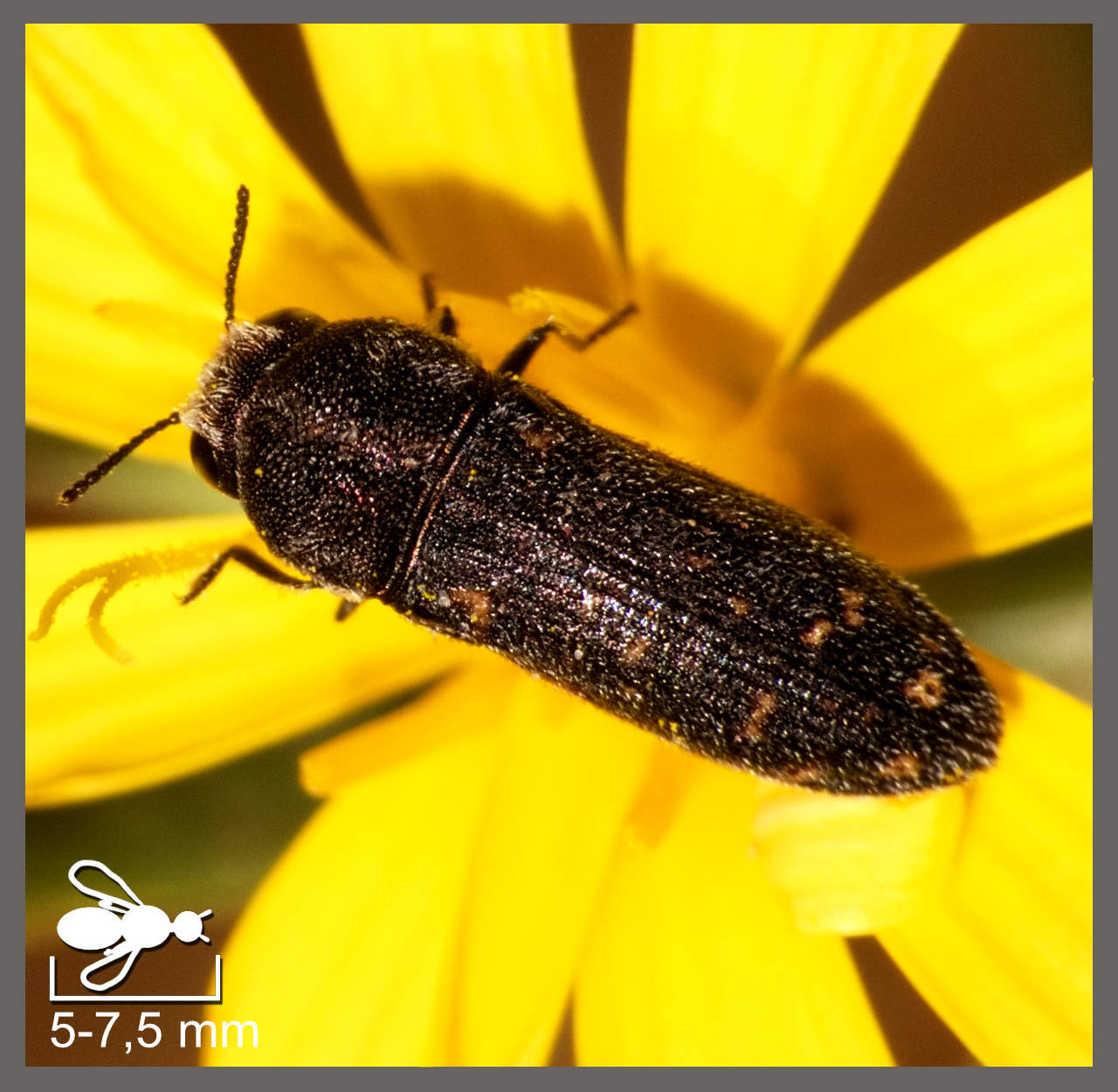 On retrouve dans cet ensemble les buprestes et les taupins. Agrilus Agrilus sp. (3-22 mm) Bupreste du rosier Coraebus rubi (8-10 mm) Coraebus undatus Coraebus undatus (10-14 mm) Petit Richard Trachys minutus (2-3 mm) Anthaxie fulgurante Anthaxia fulgurans (4,5-7 mm) Bupreste hongrois Anthaxia hungarica (7-15 mm) Anthaxie à élytres rouges Anthaxia ignipennis (6-7,5 mm) Anthaxia millefolii-umbellatarum Anthaxia millefolii-umbellatarum (4-6 mm) Anthaxie noire Anthaxia nigritula (4-5 mm) Bupreste hémorroïdal Buprestis haemorrhoidalis (15-20 mm) Bupreste à neuf taches Buprestis novemmaculata (13-20 mm) Capnode de l'Oseille Capnodis tenebricosa (13-20 mm) Capnode du Pêcher Capnodis tenebrionis (18-26 mm) Latipalpe à dos plat Latipalpis plana (20-25 mm) Acmaeodera bipunctata Acmaeodera bipunctata (4,5-5 mm) Bupreste dégénéré Acmaeodera degener (10-13 mm) Acméodère de la Piloselle Acmaeodera pilosellae (7-10 mm) Acmaeoderella adspersula Acmaeoderella adspersula (5-7,5 mm) Acméodère à fascies jaunes Acmaeoderella flavofasciata (7-11 mm) Ptosime à taches jaunes Ptosima undecimmaculata (7-13 mm) Taupins noirs Lacon et autres genres (5-30 mm) Cardiophore à 2 taches Cardiophorus biguttatus (6-8 mm) Cardiophore des graminées Cardiophorus gramineus (8-10 mm) Ampedus Ampedus sp. (9-12 mm) Melanotus Melanotus sp. (12-20 mm)