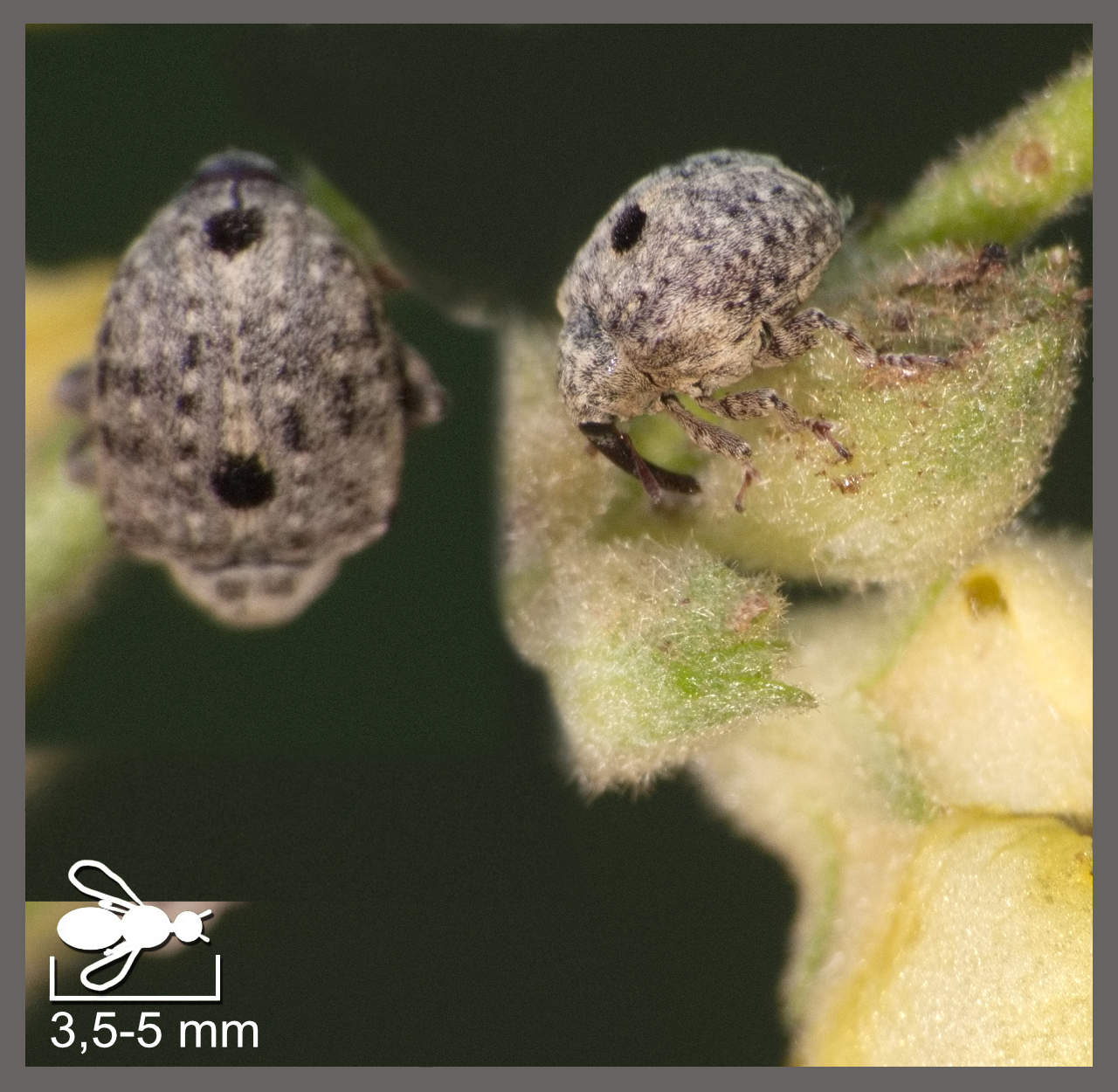 On retrouve dans cet ensemble les charançons. Anthribe bois vermoulu Platyrhinus resinosus (10-12 mm) Cigarier du chêne Attelabus nitens (4-6 mm) Lasiorhynchites coeruleocephalus Lasiorhynchites coeruleocephalus (4-6 mm) Brachycère muriqué Brachycerus muricatus (7-12 mm) Charançon de l'ail Brachycerus undatus (9-15 mm) Phrissotrichum Phrissotrichum sp. (4-5 mm) Charançon de l’iris des marais Mononychus punctumalbum (4-5 mm) Cionus Cionus sp. (3,5-5 mm) Balanin des glands Curculio glandium (6-9 mm) Dorytomus Dorytomus sp. (4-9 mm) Pachyrhinus de Lethierry Pachyrhinus lethierryi (5-6 mm) Charançon vert soyeux Polydrusus formosus (5-7 mm) Cléone excorié Coniocleonus excoriatus (11-14 mm) Larin de l'artichaut Larinus cynarae (20-24 mm) Larin des Maures Larinus maurus (6-8 mm) Larinus scolymi Larinus scolymi (9-15 mm) Lixes Lixus sp. (7-25 mm)