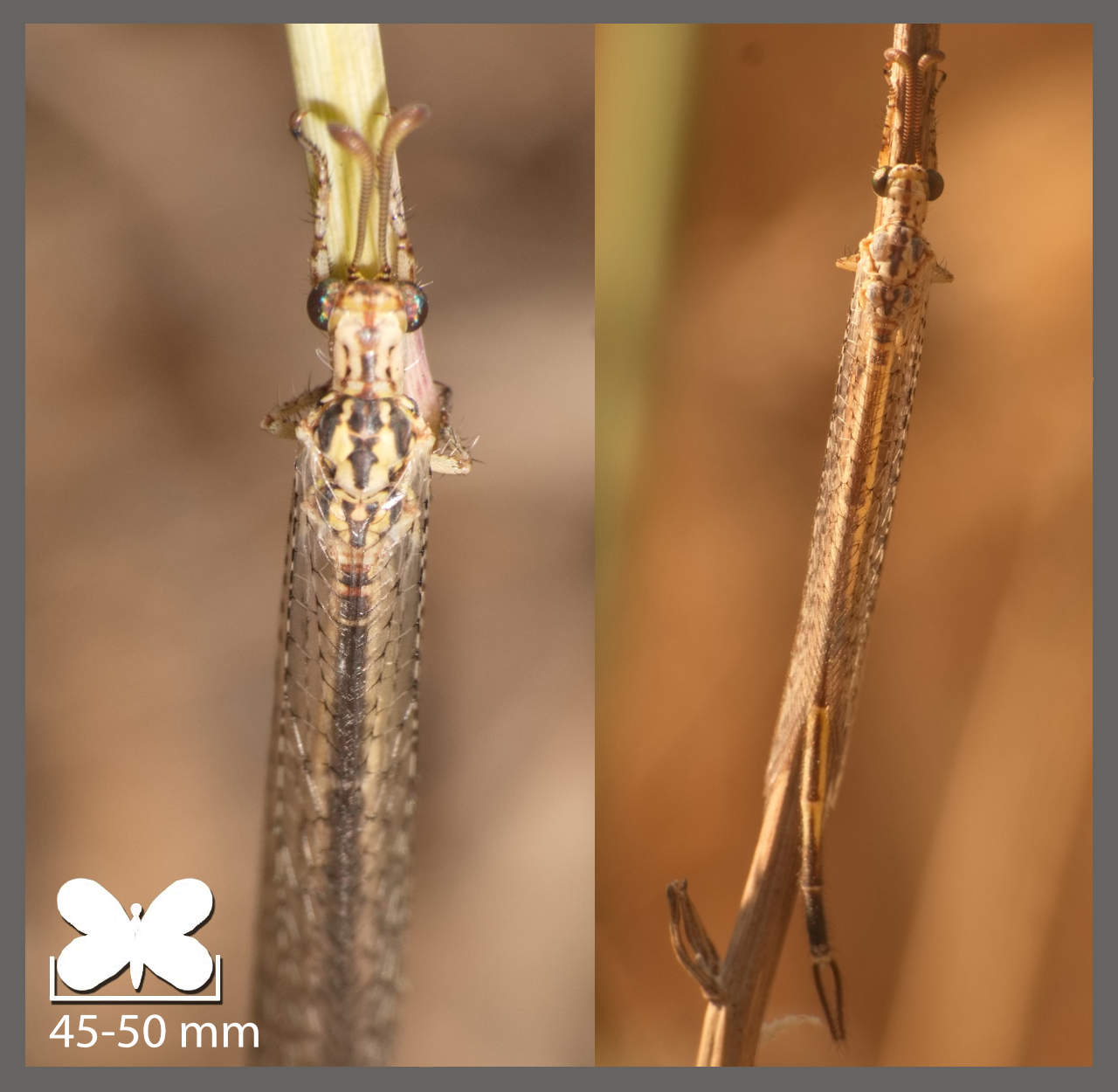 Les Mantispes ont une taille proche de celle des Chrysopes, mais leurs pattes antérieures ravisseuses ressemblant à celles des Mantes, permettent de les reconnaitre rapidement.