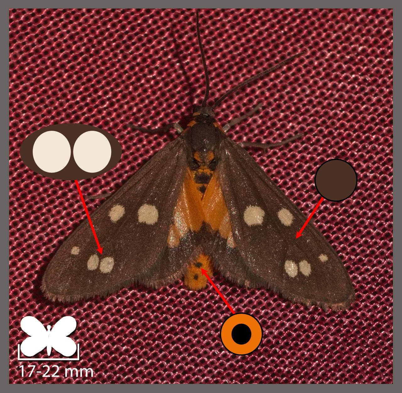 Écaille Martre Arctia caja (45-65 mm) Écaille du Plantain Arctia plantaginis (32-38 mm) Écaille fermière Arctia villica (50-70 mm) Écaille marbrée Callimorpha dominula (50-55 mm) Écaille chinée Euplagia quadripunctaria (42-52 mm) Écaille striée Spiris striata (30-45 mm) Manteau pâle Eilema caniola (25-35 mm) Lithosie quadrille Lithosia quadra (35-55 mm) Écaille alpine Setina aurita (25-32 mm) Ménagère Dysauxes punctata (17-22 mm) Noctuelle purpurine Eublemma purpurina (18-25 mm) Compagne Catocala conversa (45-55 mm) Nymphagogue Catocala nymphagoga (40-45 mm) Doublure jaune Euclidia glyphica (25-30 mm) Mi Euclidia mi (25-30 mm) Passagère et la Fausse Passagère Dysgonia sp. (42-50 mm) Bombyx disparate Lymantria dispar (40-60 mm) Orgyie du Kermès Orgyia trigotephras (27-32 mm) Spectre Apopestes spectrum (70-80 mm)